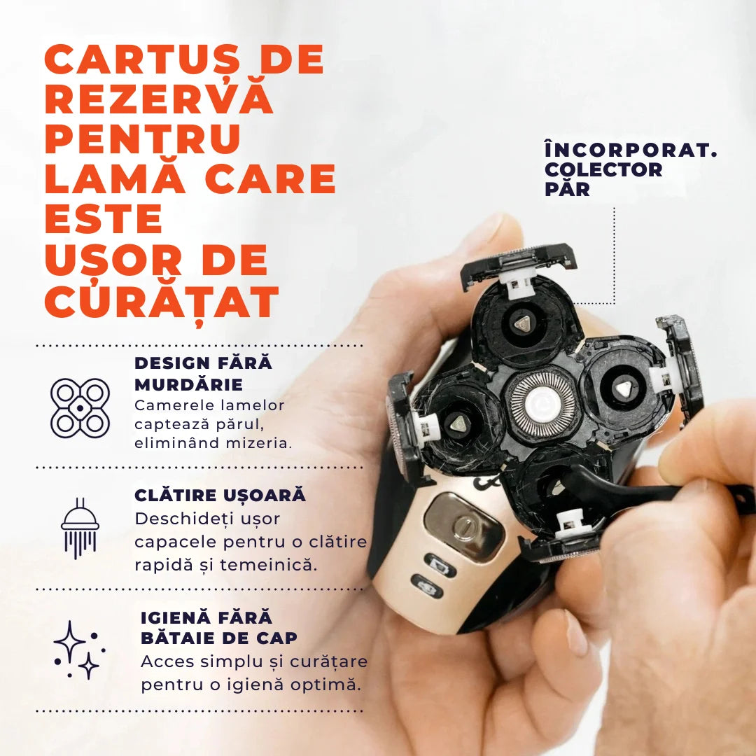 Proiectat pentru o prindere confortabilă în mână, permite un bărbierit lăgăt al capului cu controlul deplen.
