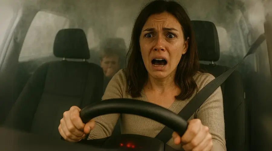 Fumul umple interiorul. Mai sunt câteva secunde până când mașina ia foc.