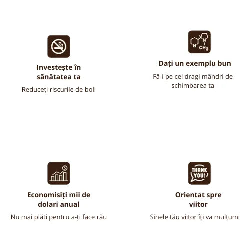 Nu este vorba doar despre nicotină. Ritualul de la mână la gură, obsesia orală, inspirația și expirația profundă creează un ciclu puternic de obicei. Plasturii sau guma nu ating acest ciclu, iar majoritatea țigărilor electronice păstrează nicotina în joc.